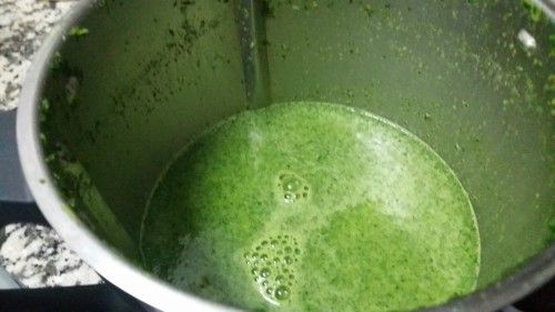 Cuando rompa a hervir, echaremos la kale. La dejaremos 2/3 minutos.