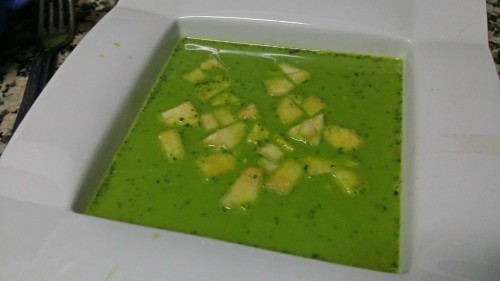 Mi opinión: no tenía muy claro si me iba a gustar la mezcla de la sopa (con toques dulces por la manzana) con los calamares. Por eso hice varias versiones: sin calamares-con manzana, sin manzana- con calamares y con calamares-con manzana. Muy ricas todas las versiones. La que más me gustó fue la completa con calamares y manzana. Es un contraste muy rico y original.