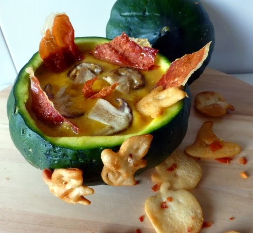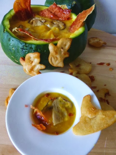 El zapallo: Porque era el último del huerto del verdulero, como la noche del 31 será la última de octubre y porque como no tengo sopera a mano? me vino de maravilla.