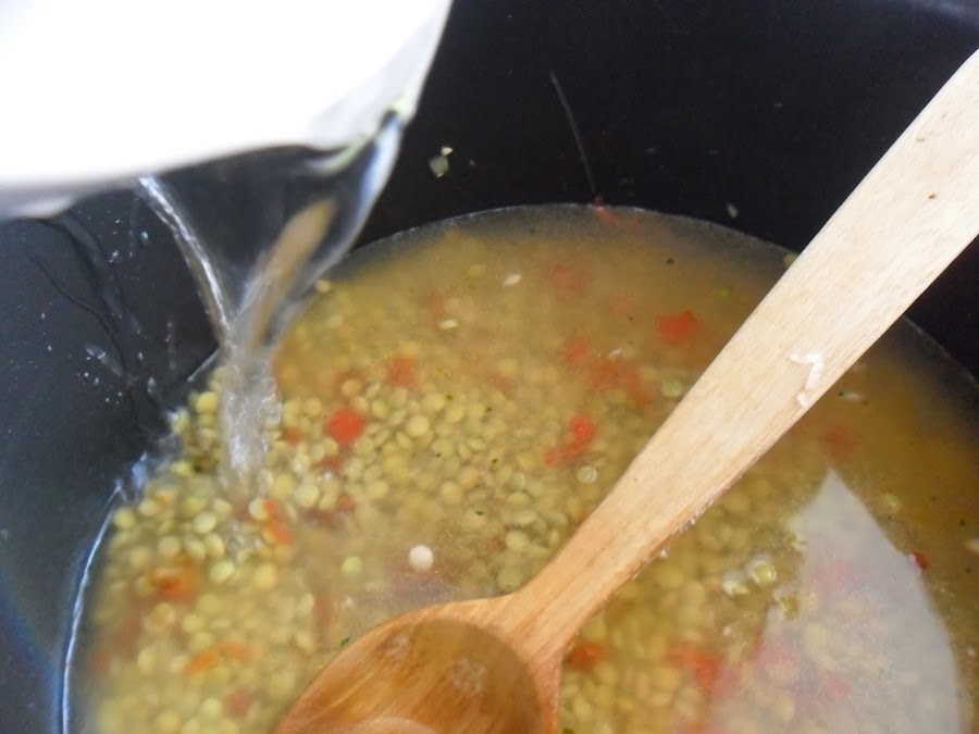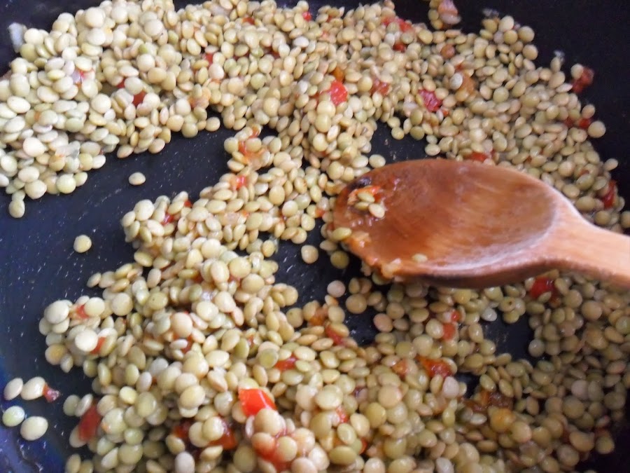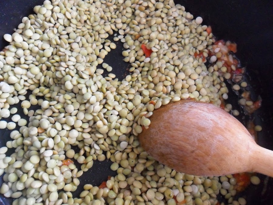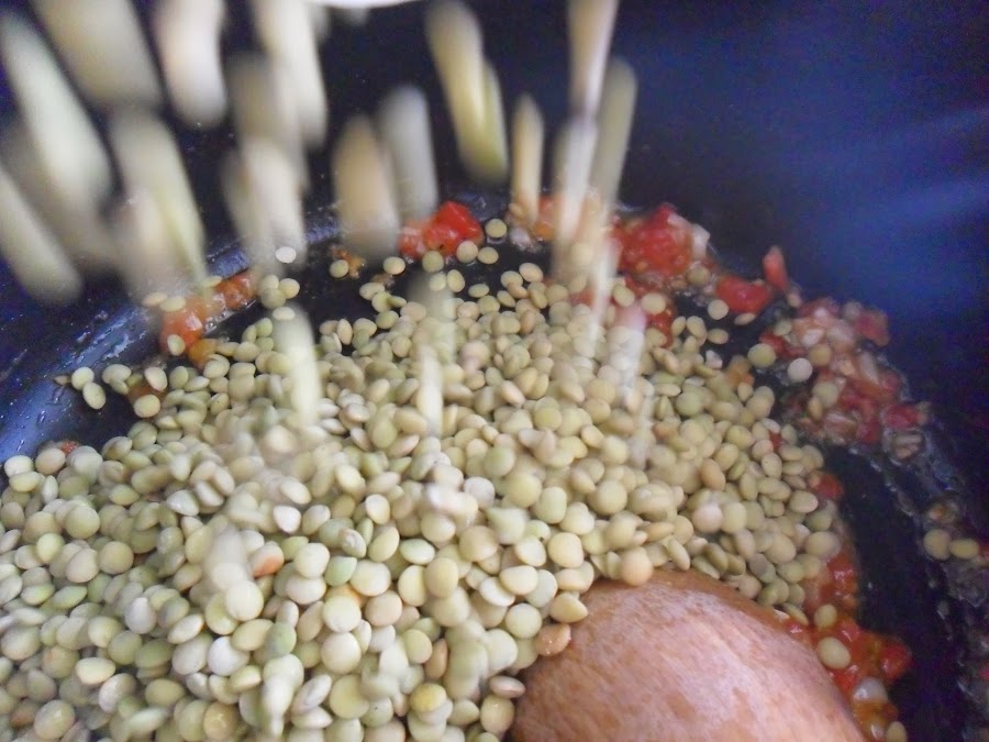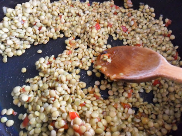 · Ponga las lentejas y revuelva