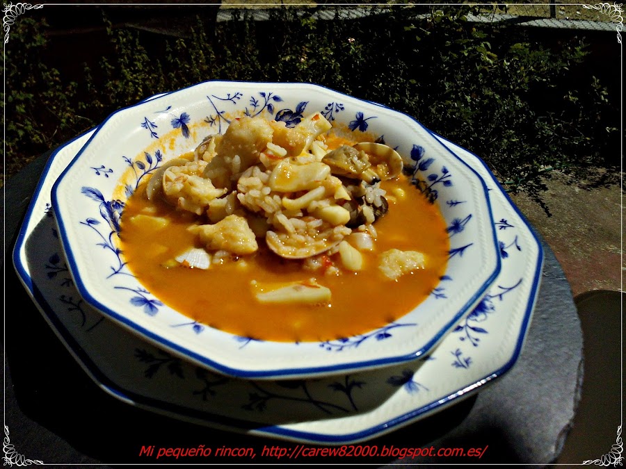 minutos , ahora añadimos la verdura pochada y batida , ahora los huesos de rape y el fumet y dejamos todo cocinar unos 25 minutos , tendremos que probar el sabor de vez en cuando para dejarlo a nuestro gusto , ahora añadiremos el filete de parca en trozos y pasados otros 5 minutos añadimos el arroz y lo tenemos otros 10 minutos para añadir las gambas y apagar la olla , los dejaremos tapado y sin fuego otros 3 minutos tiempo de sobra para que nuestra sopa esté terminada .