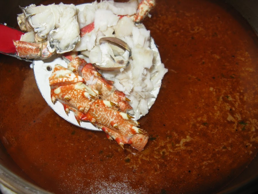 Es una sopa de marisco y pescados, ya que admite lo que se quiera, así que según gustos se añade los ingredientes que queramos.