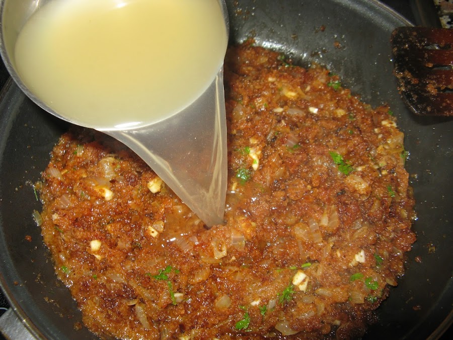 Comprobamos pasados 5 minutos como está el caldo, si quedara muy espeso se le puede añadir un poco más de pan rallado