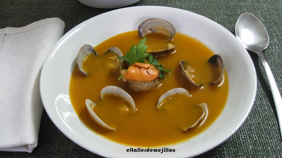 "Estos días, que sientes que el frío está cerca, sientes que la brisa ha cambiado, a veces sale el sol, momentos que disfrutas de un hermoso cielo azul, o el día se nubla para dar paso a una tarde gris, qué mejor que preparar en casa a toda la familia una rica sopa de mariscos". Así comenzaba la entrada en la que Carolina nos daba instrucciones para la elaboración de su Sopa de Mariscos. La tarde gris, el frío, la familia. Los tres motivos que más veces me han motivado a meterme en la cocina y sumergirme entre ingredientes, fogones, aromas y sabores.
