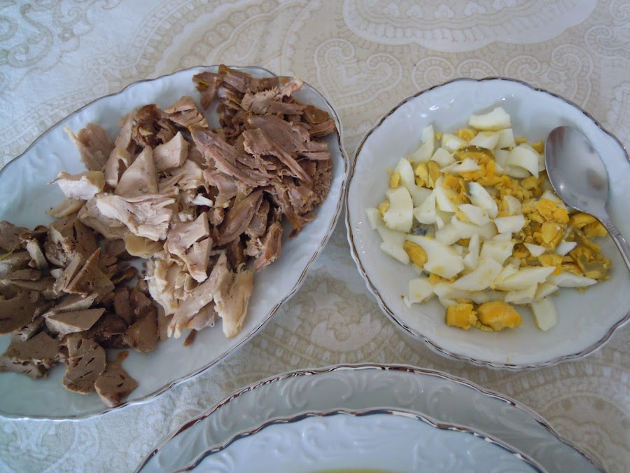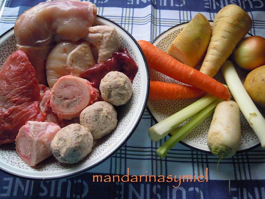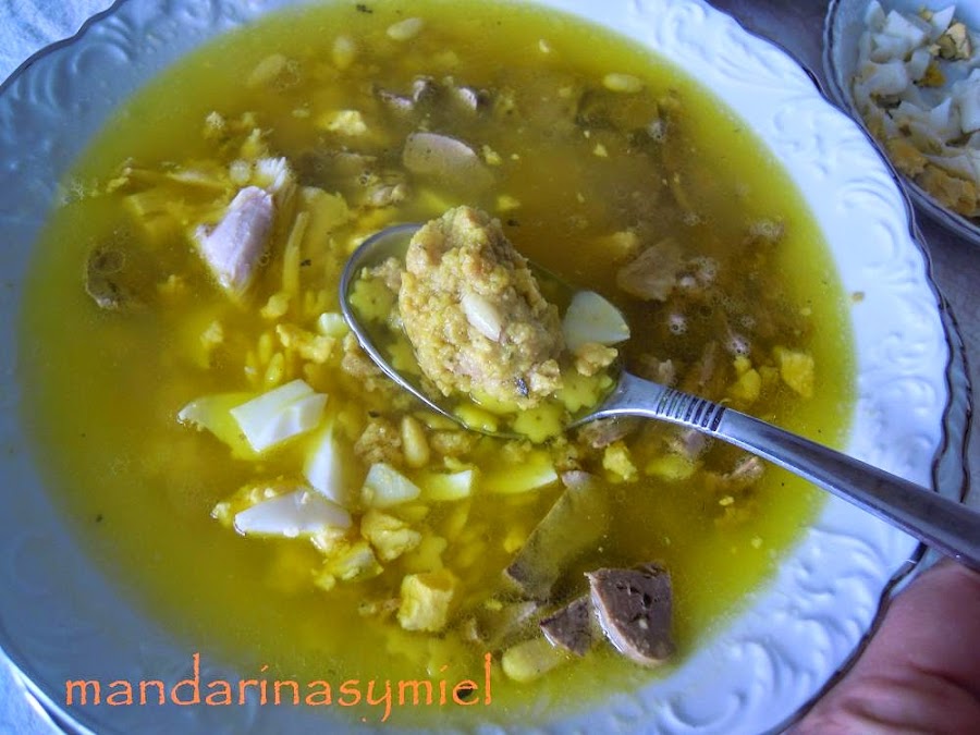Aparte de las carnes que yo he puesto para preparar esta sopa, en casa siempre hemos utilizado además, gallina, y mollejas de pollo (mollejas, no encontré).