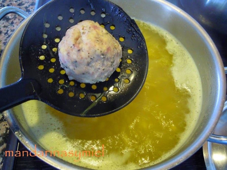 Las pelotas de Navidad, llevan hierbabuena, canela, pimienta y piñones, y cuando hierven en la sopa dejan un sabor delicioso.