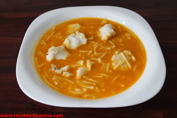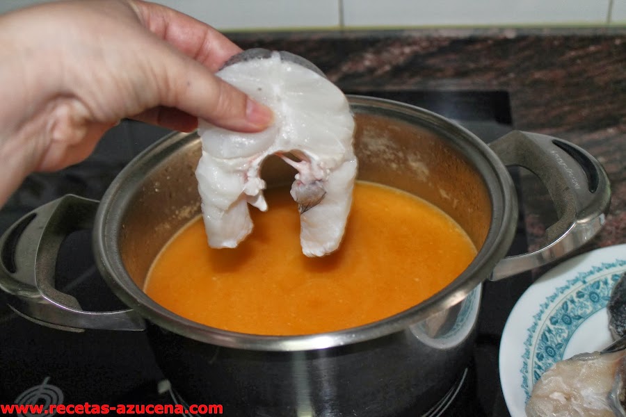Pasados 3 minutos desde que añadimos los fideos añadiremos las rodajas de merluza y las dejaremos hasta que los fideos estén hechos.