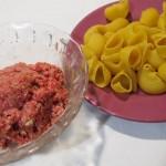 Mientras tanto preparamos nuestra carne picada (2 veces picada) añadiéndole un puñadito de miga de pan mojada en leche, unos piñones y un ajito bien picados, sal y pimienta.