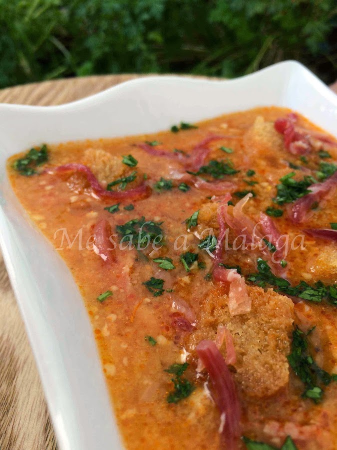 Se trata de una sopa bastante parecida a la de almendras pero si le incluímos el jamón serrano se convierte en un plato maravilloso lleno de sabores que gustará a toda la familia.