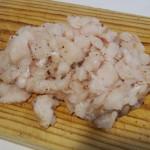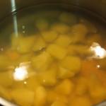 Ponemos a cocer el caldo y echamos en él las patatas cascadas no muy grandes. Mientras las patatas se cuecen en el caldo, troceamos nuestro pescado en crudo y hacemos una mayonesa casera a la que le añadiremos el zumo de 1/2 limón para darle un toque ácido y aligerarla un poco.