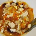Empezaremos preparando un caldo ligero con la cabeza, la raspa y los recortes de nuestro pescado blanco, en este caso merluza, dejamos las partes más nobles para otra preparación. Para ello pondremos en una cazuela 1 litro de agua, la cabeza, cogote y raspa del pescado, unos cascos de cebolla, una hoja de laurel y una pizca de sal. Ponemos al fuego y cuando alcance el punto de ebullición bajamos a fuego medio y contamos 15 minutos. Retiramos y colamos. Cuando la temperatura nos lo permita, extraemos con cuidado la carne de pescado que podamos de la cabeza y el cogote y reservamos.