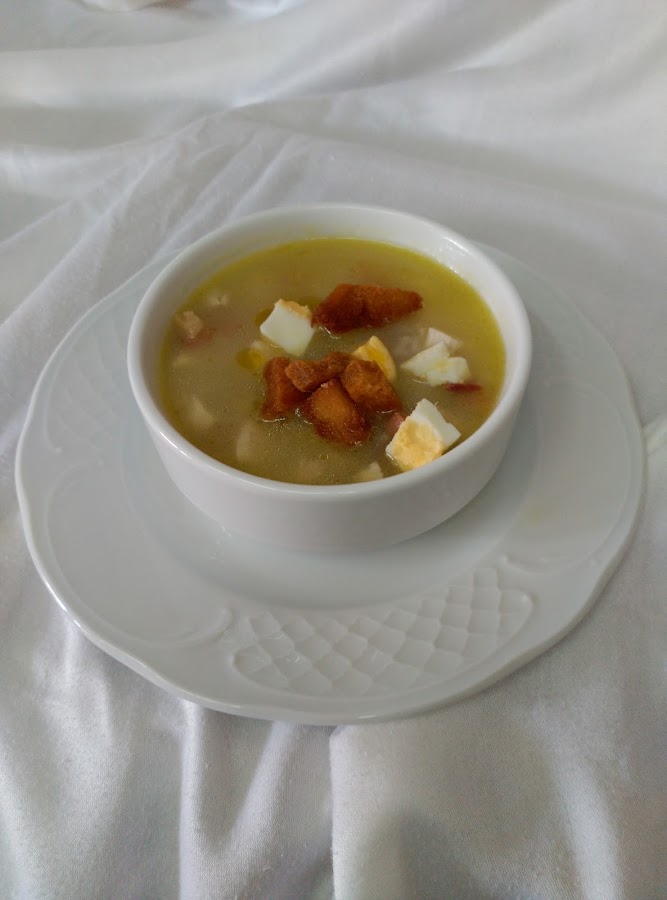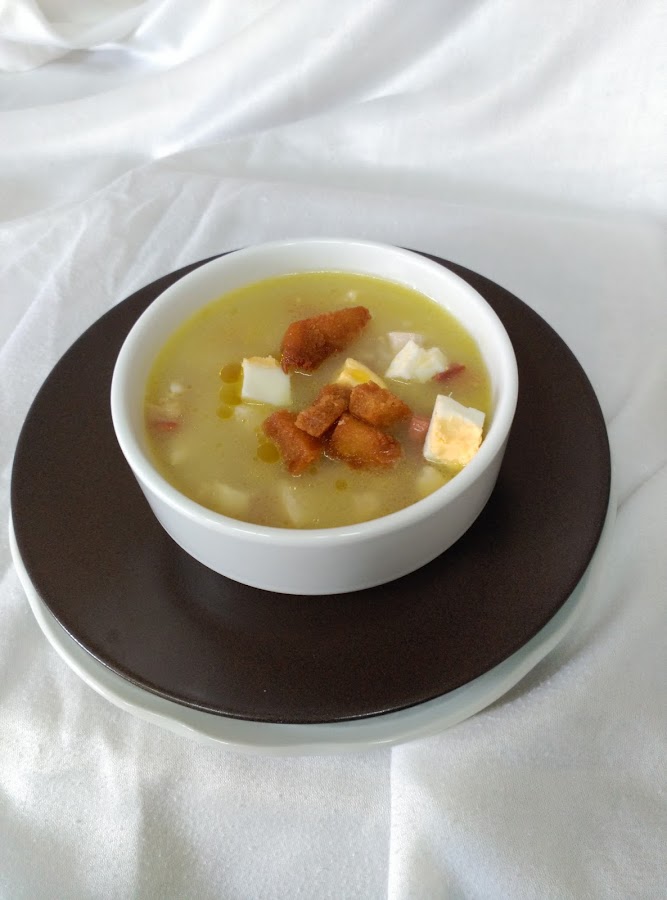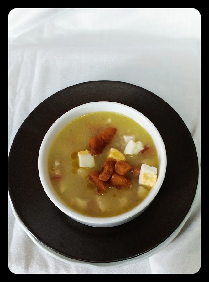 Pica el huevo 2 segundos a velocidad 4 y añadelo a la sopa junto con los picatostes.