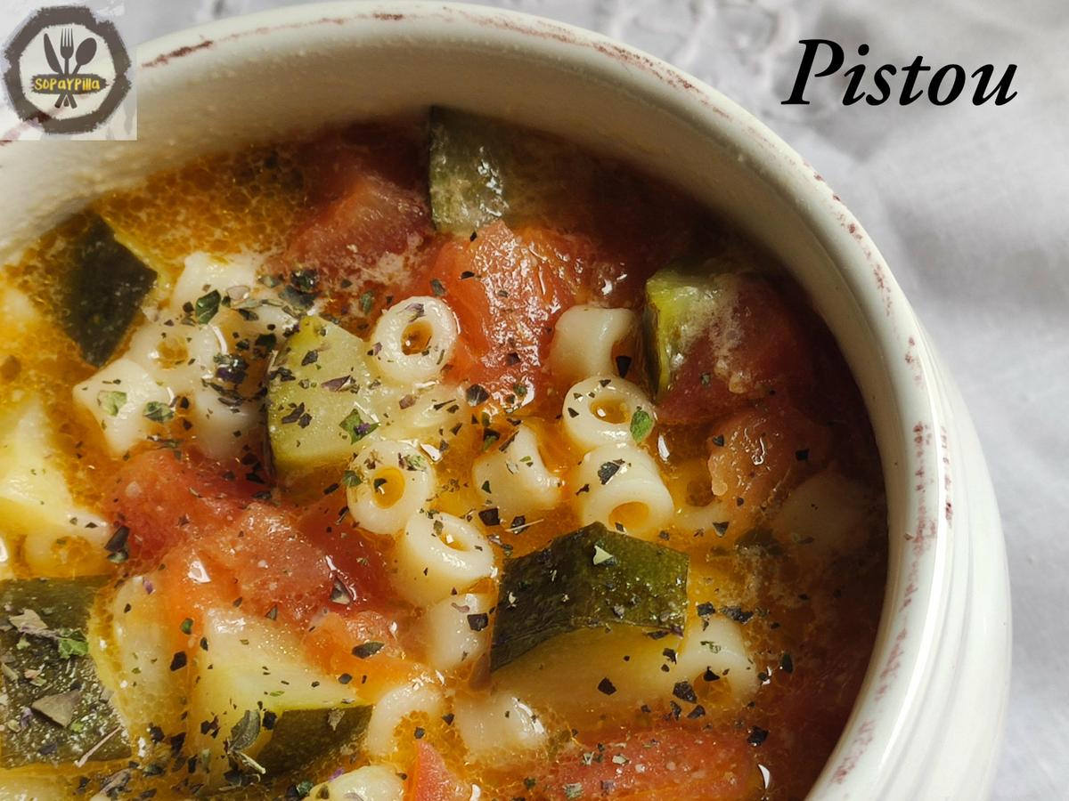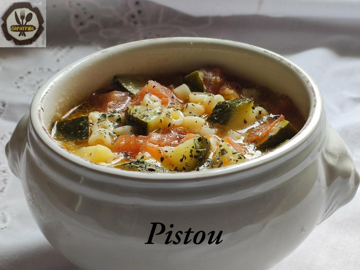La soupe au pistou, es una sopa francesa de verduras con pasta corta. Existen tantas variantes como verduras hay, ya que es una sopa de aprovechamiento por excelencia. Pero lo que le da ese toque diferenciador, sublime y que transforma una sopa cualquiera en una sopa de aúpa, es el pistou. (Una salsa pesto de toda la vida). Una sopa con salsa pesto? pues sí y está que no puedes parar de comerla! vamos con ella! Si no has preparado nunca la salsa pesto, pincha en el ingrediente y te llevará a la receta, la puedes hacer con almendra triturada en lugar de piñones y haciendo solo la mitad, si no quieres que te sobre.