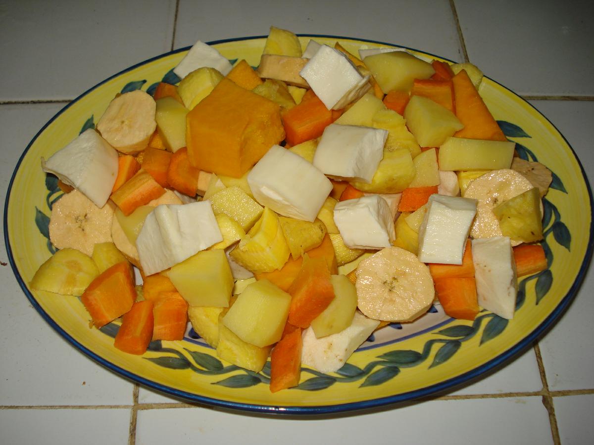 Verduras: 1 yuca mediana 1 porción de auyama, ocumo