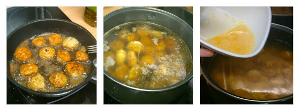 3.Cuando las albondigas las tengáis doradas las incorporáis al caldo .