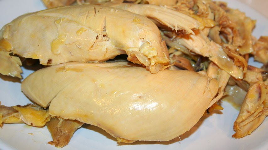Pasada la hora comprueba que el pollo está hecho. Su carne se deshace al pellizcarla o al tirar de un hueso.
