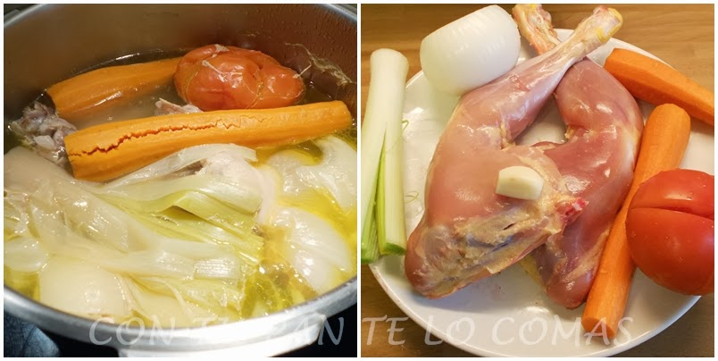 Ponemos el pollo y las verduras en la olla a presión y lo cubrimos con agua, más o menos 1 litro y medio. Añadimos sal y dejamos el tiempo necesario. En mi olla se hace en unos 13 minutos aproximadamente.