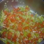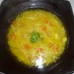 Cuando el caldo este hecho añadirlo a la cazuela de las verduras y que de un hervor. Lo suficiente para que las verduras se cuezan con el caldo.