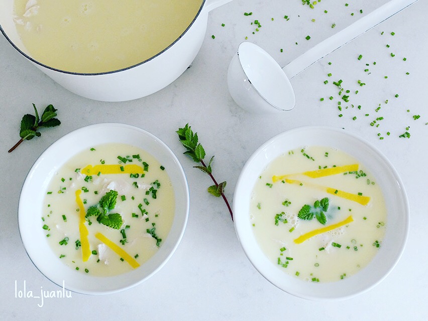 El toque cítrico de esta sopa de pollo y arroz es increíble, el color y cremosidad que le aporta las yemas de huevo es una delicia y las hierbas aromáticas le dan esa frescura tan característica de ellas.