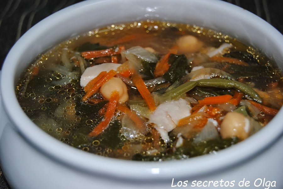 Esta mañana cuando salí de casa hacía tanto frío que he estado todo el día pensando en la sopita que me haría para cenar y como he hecho mucha, también para mañana comer. Que bien me ha sentado, estaba buenísima y es supersana. Lleva verduritas, pollo y unos cuántos garbanzos, así que es muy completa a la vez.
