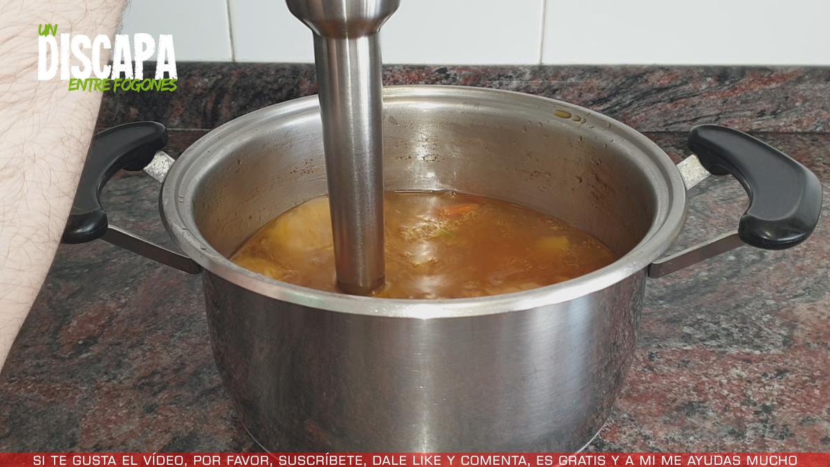 5Seguimos pochando las verduras un poco más, hasta que en la base de la cazuela se va formando como una costra marrón, eso hará que nuestra sopa tenga un color y un sabor espectacular.