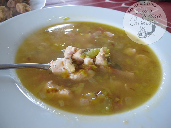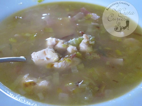 En esta sopa he combinado los puerros con pechuga de pollo, bacon ahumado y algunas hierbas para darle un toque diferente a la sopa.