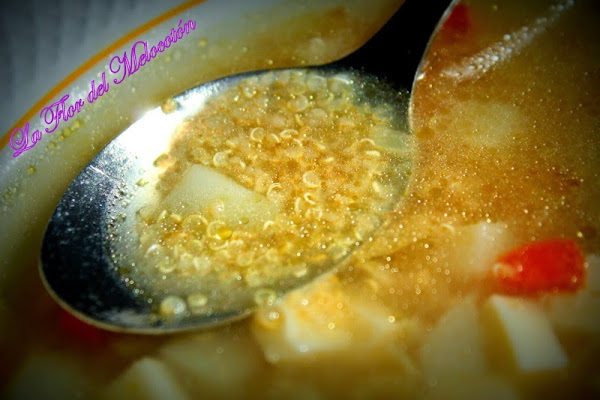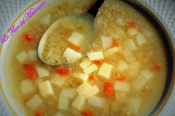 Hace un tiempo una mamá del cole de Gorka me dijo que había una tienda de esas que venden los frutos secos, harinas y legumbres a granel en el centro de Terrassa. Ya os imagináis lo que pasó, no? Claro! a los pocos días allí estaba yo. Buuff! Que compro? Que dejo de comprar??? Lo primero era lo primero, la almendra, los piñones, había que hacer los panellets. Uf! tanto tiempo ha pasado ya??? En fin, vi canela y compré, vi guisantes pelados secos, y compré, vi soja, y compré... Cuando ya pensaba que era suficiente, por el rabillo del ojo vi la quínoa. Me encanta la sopa de quínoa y hacía mucho, mucho, mucho que no la preparaba... y compré! Y ahora os la dejo por si tenéis la ocasión de prepararla.
