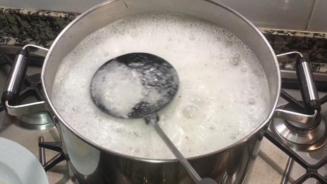 Cuando hierva hay que ir sacando la espuma de vez en cuando. Herviremos el caldo durante unos 30 minutos.