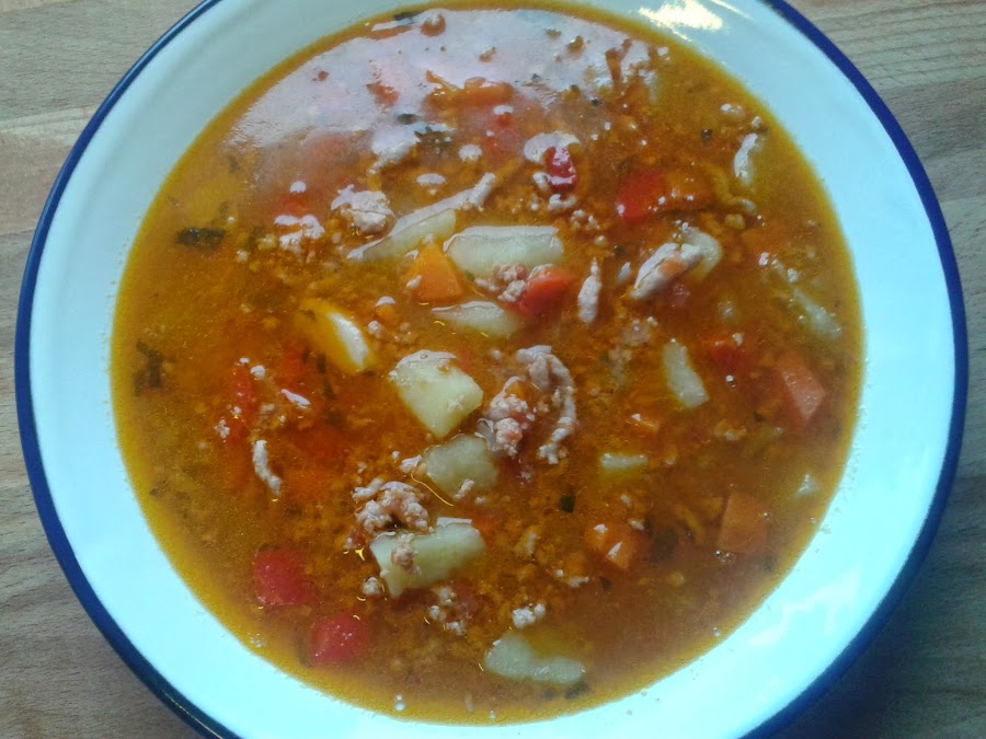 Es una sopa muy especial, ayer la comimos cuatro y nos gustó mucho. Además de tener un aporte nutricional muy alto con las hortalizas y la carne.