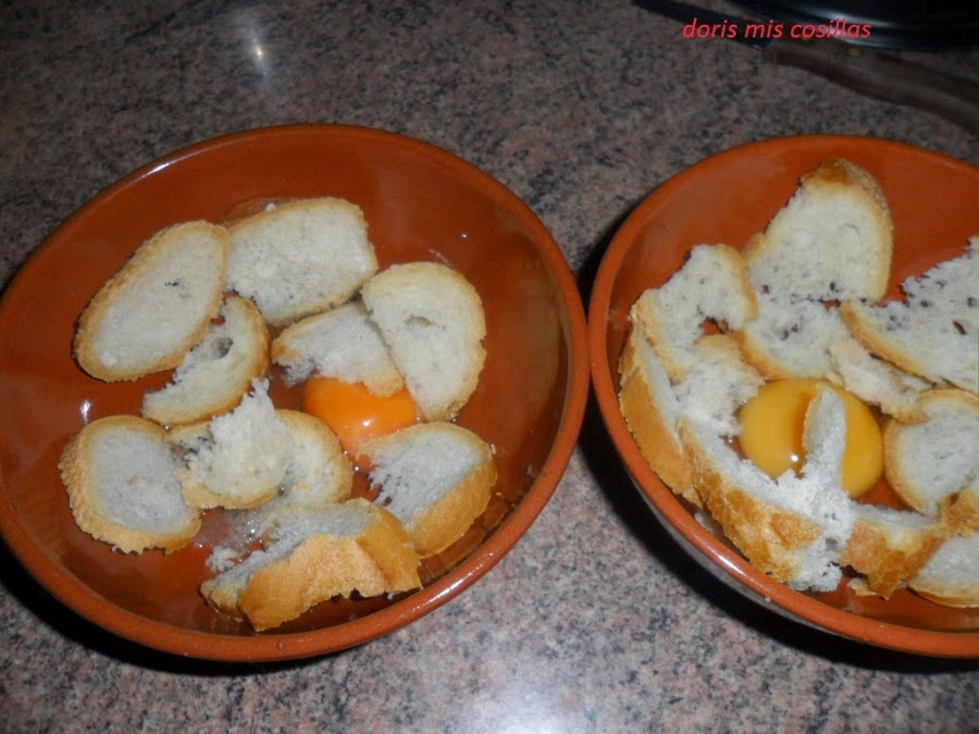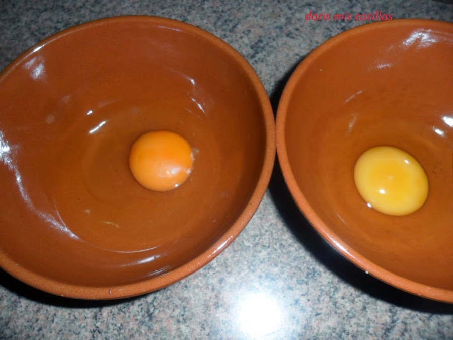 Mientras, este paso, en unos cuencos de barro cascamos los huevos enteros y retiramos la galladura.
