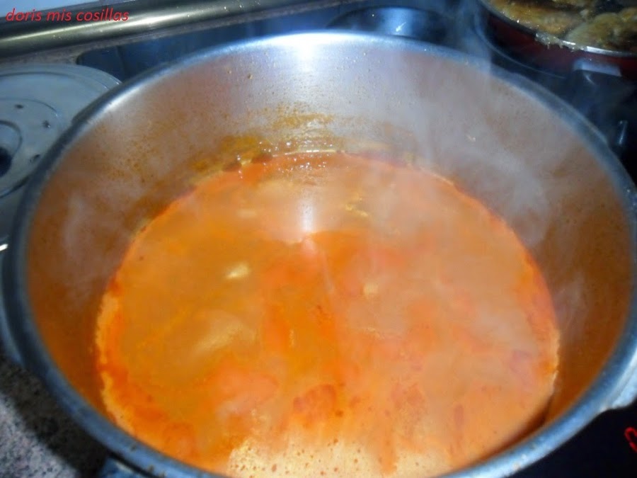 Mientras cuece remover y dejar consumir el líquido un poco. Rectificar de sal y azúcar para que no esté ácido.