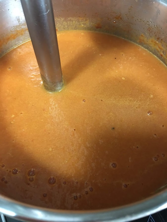 Se pasa por el chino (si habéis empleado tomates frescos) o por la batidora hasta que quede una crema suave.