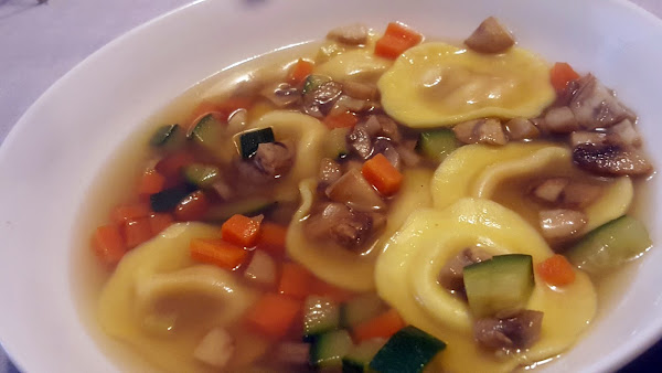 SOPA de TORTELLINIS con TROPEZONES de VERDURA y CHAMPIÑONES