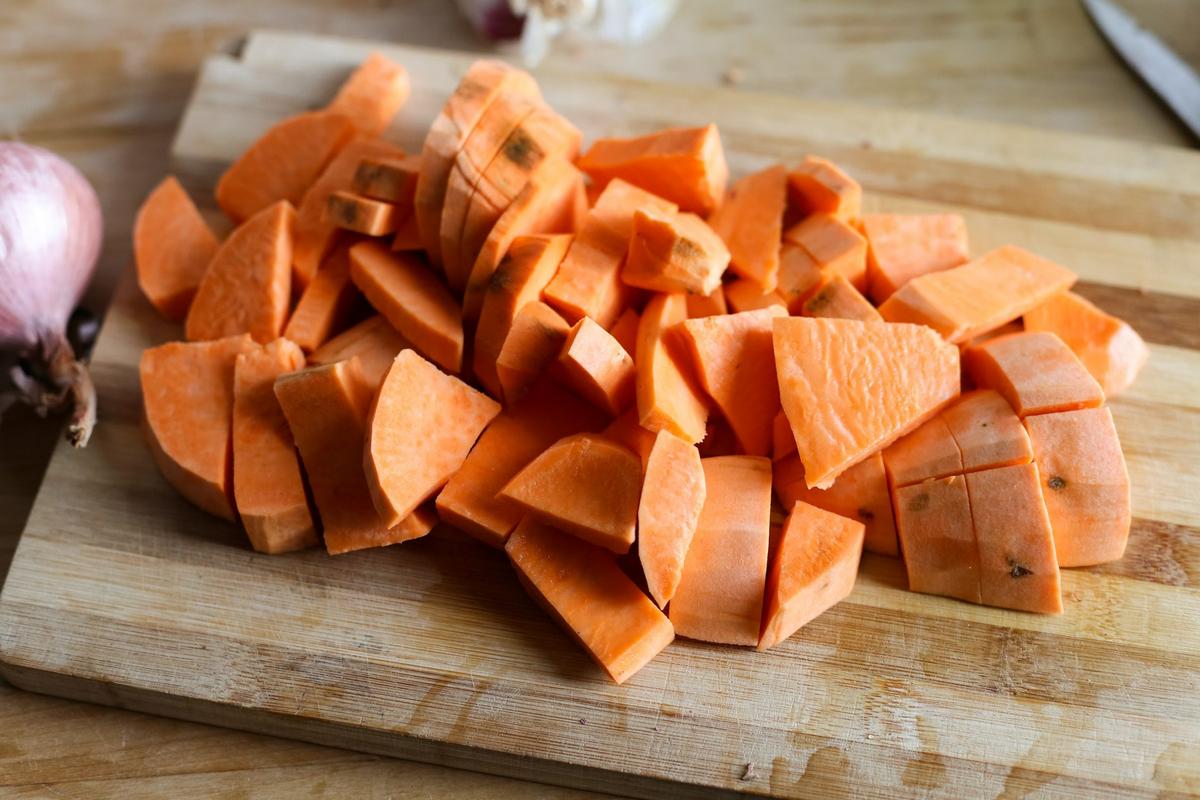 Si no tienes camotes (boniatos) o no se consiguen fácilmente en tu país puedes cambiarlo por zapallo (calabaza).