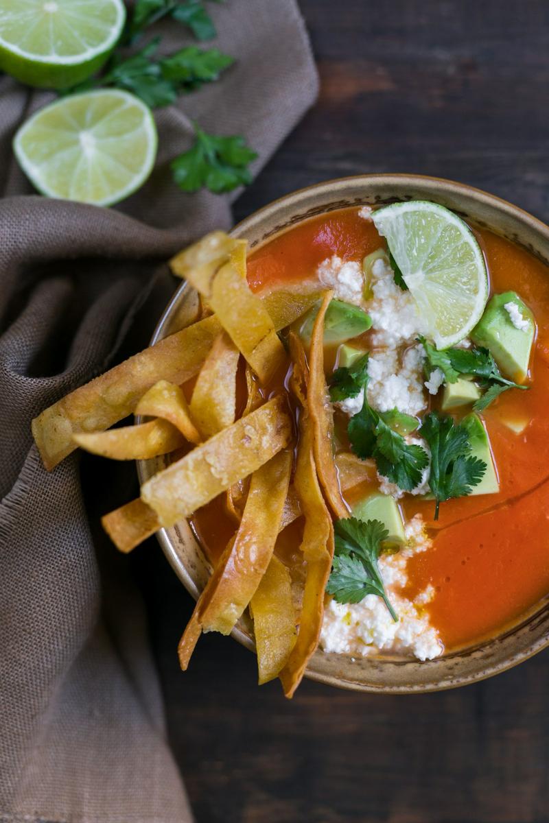 ¿Y esta maravilla de dónde salió? La receta original la encontré buscando que hacer con un par de camotes (boniatos) que había comprado. Buscando encontré una maravillosa receta de Pinch of Yum (uno de mis blogs favoritos) en la cual proponen una versión de sopa de tortilla con camote cocinada en instant pot (robot de cocina). Pero como yo no tengo ese aparato decidí prepararlo de manera tradicional usando una olla común y corriente, ¡y el resultado fue maravilloso!