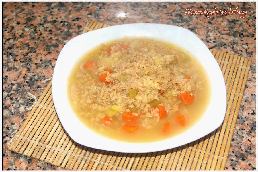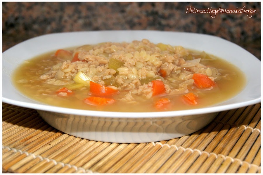 A la sopa le añado siempre verduras troceadas y en esta ocasión, le añadí una dosis extra de proteínas con la soja texturizada, para ayudar a regenerar el organismo.