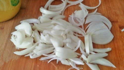 - Lo primero que hacemos pelar y trocear fina la cebolla.