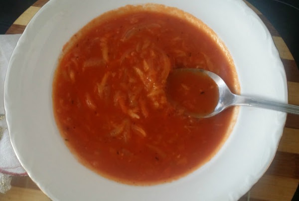 Mi opinión: Está buena aunque creo que el sabor de tomate predomina demasiado sobre los demás sabores. La próxima vez habrá que ponerle menos tomate. Por lo demás, no tengo queja. Queda más espesa de lo que puede esperarse para una sopa.