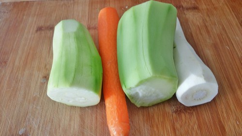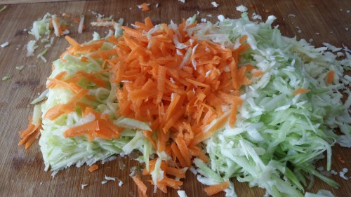 - Mientras, pelamos y rallamos la zanahoria, el calabacín y la chirivía.
