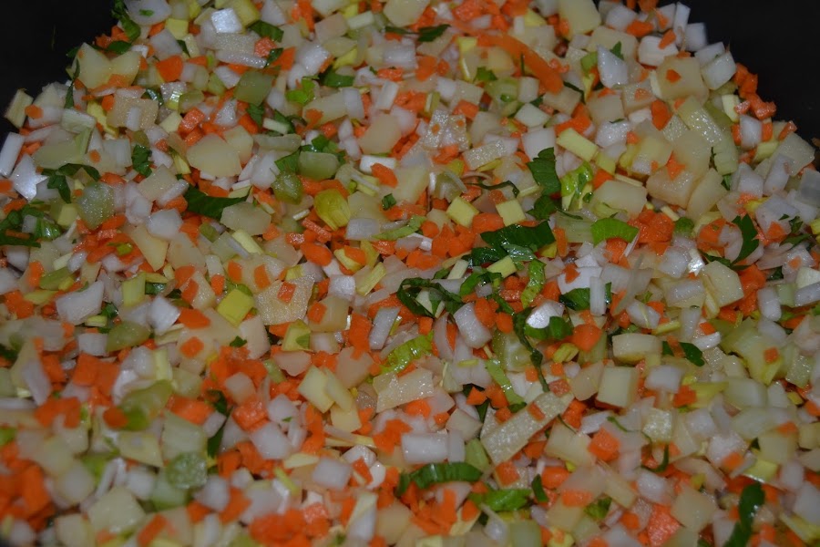 Lavamos todas las verduras y las cortamos muy pequeñitas,
