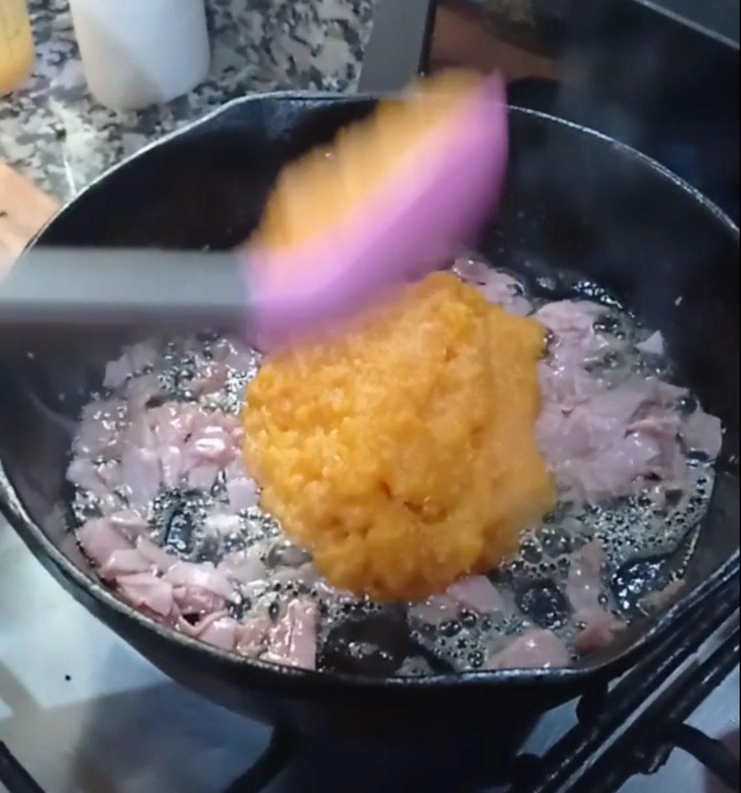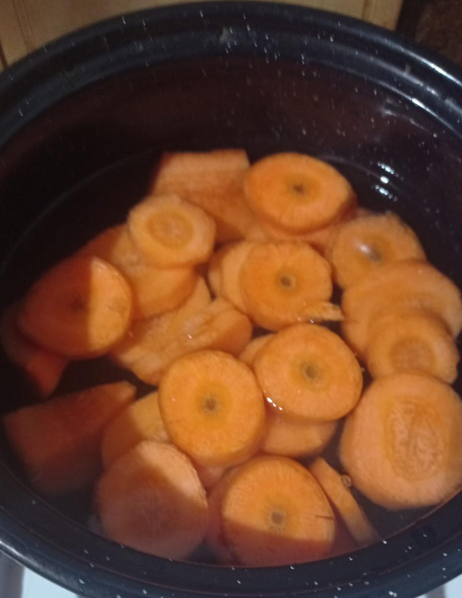 Agregar el puré de zanahorias y el caldo hasta cubrir