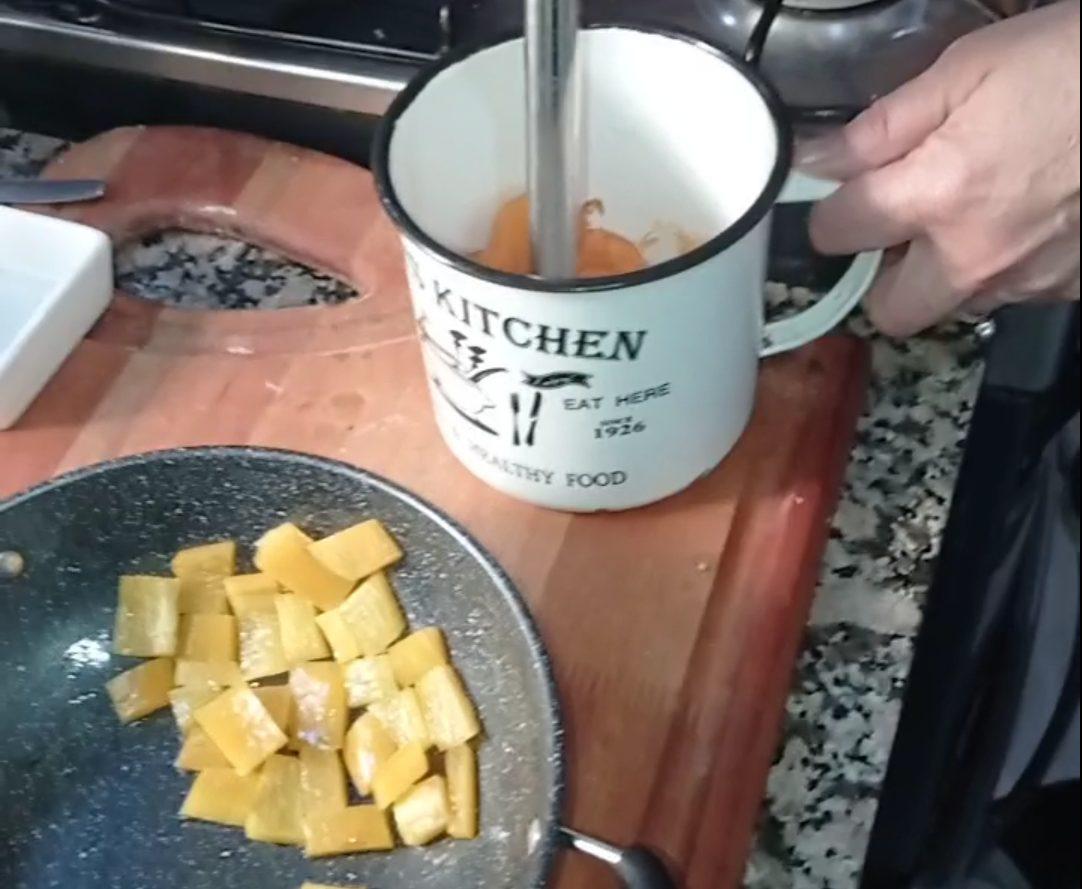 Mixear las zanahorias y el morrón, hacer un puré y reservar
