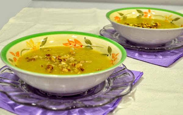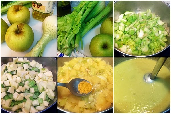 Sopa fría de apio y manzana al curry, con frutos secos.