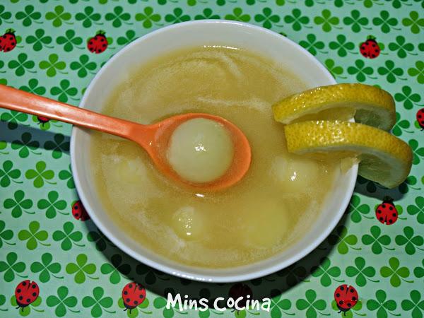 - Poner en boles individuales y añadir las bolas de melón, el limón y alguna fresa o frambuesa si nos gusta (al final me olvidé de ponerlas =D ).