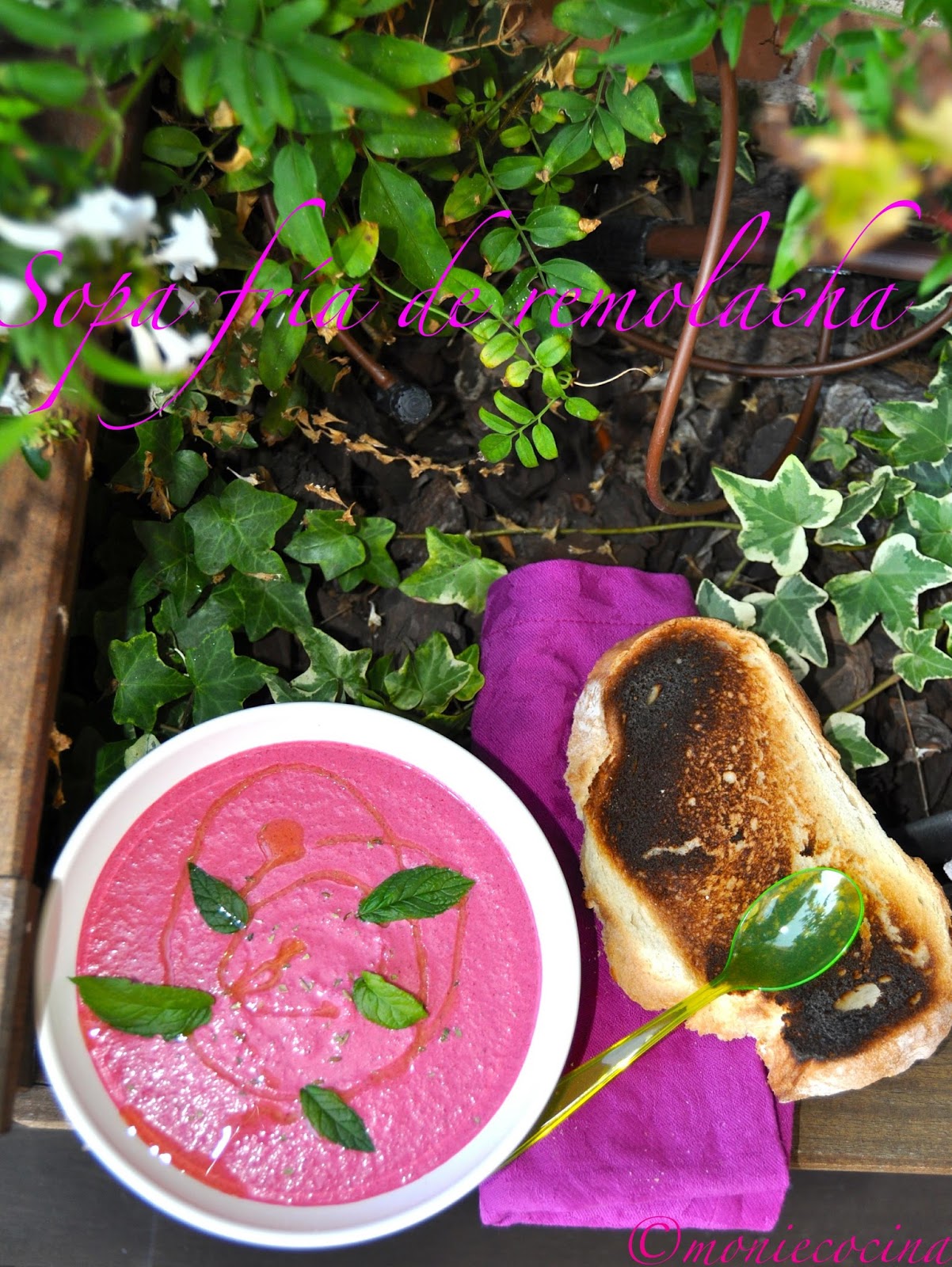 Para servir, ponemos en un bol, o en tacitas individuales o en vasitos de coctel. Regamos con aceite de oliva y una hojas de menta que dan un sabor refrescante. Espero os guste.