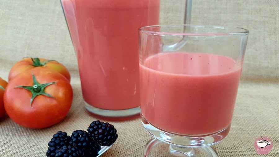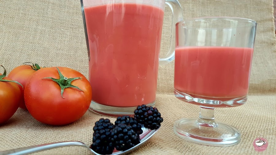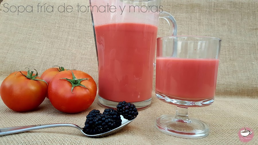 El caso es que ya hice el año pasado mermelada de moras y, aunque no lo creáis aún tengo unos cuantos tarros para este año, así que esta vez las he utilizado para otros menesteres. Uno de ellos este gazpacho simple (muuuy simple), tanto que ni lo he llamado gazpacho sino sopa fría. Y gustó, la pega es que no estaba tan fresco como pretendí, pero las altas temperaturas no es que estén ayudando mucho que digamos... así que si os decidís a prepararlo tenerlo en la nevera hasta el momento de servirlo.
