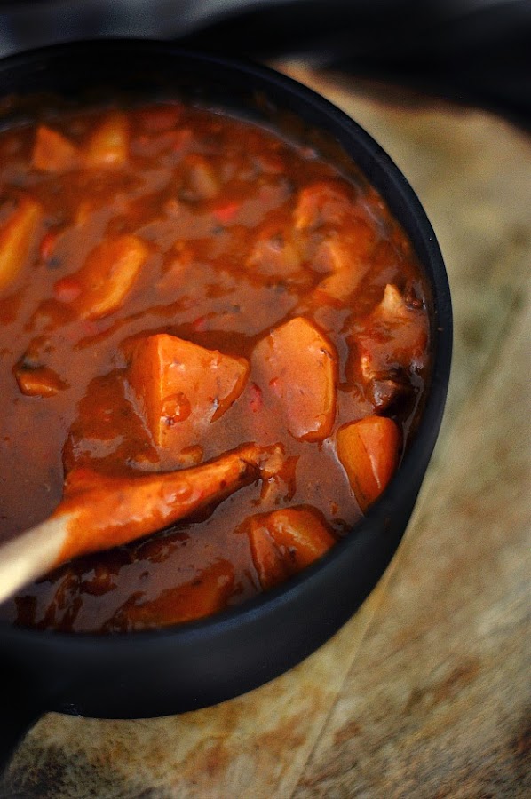 Mi primera sopa gulash la tomé hace seis años en un pequeño restaurante de un callejón de la ciudad que considero la más romántica, Praga. Ya siempre que la encuentro en cualquier carta cuando emprendo viaje y paso más allá de las fronteras de Francia, me lo pido seguro. Aunque en Alemania, un plato gulash compite mucho con un delicioso Sauerbraten. Cuando estuve en Bavaria, por recomendación de mi vecina alemana comí durante siete días sólo eso sin variar. Algún día tengo que hacer un buen Sauerbraten, pero hoy esto va de gulash así que vamos a calentarnos el alma con este guiso que… ¡ñam!