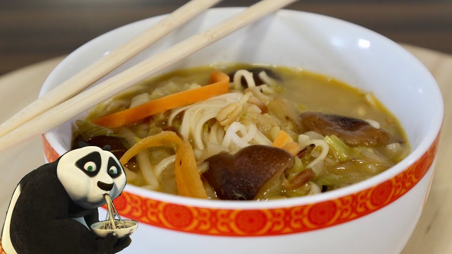 Hoy te enseño a preparar la mítica sopa de la película Kung Fu Panda una sopa oriental de fideos llena de sabores y matices que te sorprenderán, además es muy sencilla de elaborar y es ideal para esta época del año, entrarás en calor en un momento.