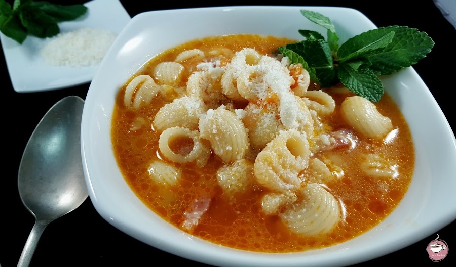 Versionada, pero sin perder la esencia, esta sopa tan rica la he tomado prestada de mi querida amiga Isa. En su blog, Cocina con Reina, podéis ver la receta original que, habiendo probado esta, no tengo ninguna duda de que está espectacular. Así que no dejéis de daros una vuelta por su cocina porque tiene muchas cosas y muy ricas.