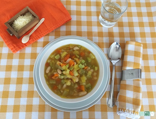 Una sopa que podemos adaptar un poco a la variedad de verduras que tengamos, se le puede añadir pasta o legumbres, en mi caso unas judías las han convertido en un plato único, una naranja de postre y a seguir un poco mas;